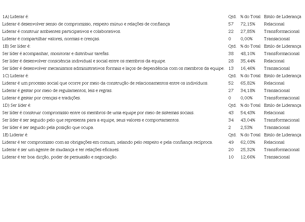 Dos cinco quesitos reunidos na Tabela 4 chama a atenção que a única alternativa na qual a liderança relacional não figurou no topo se relaciona com a realização de tarefas, o que traz novamente à tona a ênfase, conforme o Entrevistado 4, “ao fazer, ao cumprir obrigações” (Informação verbal, 24 de novembro de 2016).