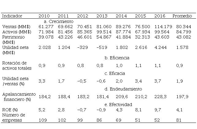 En la Tabla 1 se presentan algunos indicadores financieros al período 2010-2016 del promedio de las 81 empresas más grandes de Colombia del sector textil, confección, diseño y moda en Colombia.