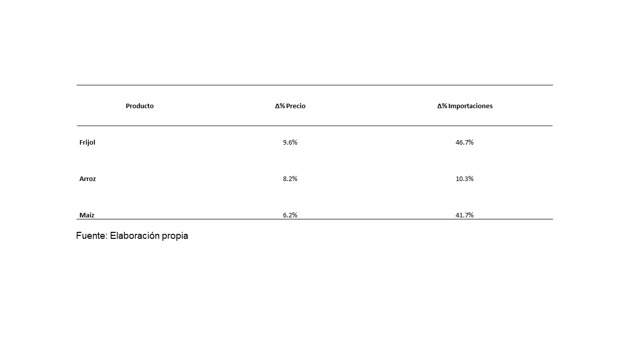 Sin embargo, sí permiten mostrar que existe una relación directa entre el diferencial explícito de las importaciones y las elasticidades propias y cruzadas de los granos básicos en Honduras.