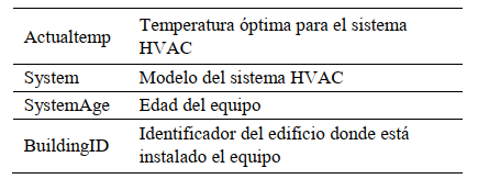 La tabla 2, describe las variables del conjunto de datos HVAC, que está formado por 8,000 registros en edificios con un rango de edad de 0 a 30 años.