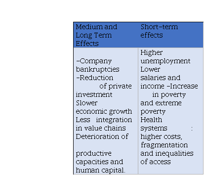 According to Cabezas (2020) and The Economic Commission for Latin America and the Caribbean (ECLAC) has pointed out the structural challenges that COVID-19 has brought to the region. The economic and social effects and its impact in the short and medium term, which exacerbates poverty and the inequality gap, also demonstrates the vulnerability and inefficiency of health systems to address a pandemic of this magnitude, which taking into account the comorbidities due to Non-Communicable Diseases (diabetes, hypertension, ischemic heart disease, obesity, asthma, among others). The population has a higher risk of clinical complication and a fatal outcome.