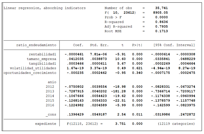 [17] Al aplicar efecto fijo se logra tomar una variable que no está dentro del modelo para analizarla en diferentes instantes en el tiempo, además aísla efectos exógenos para observar las variaciones propias de las variables.