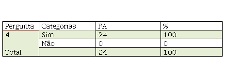 Quanto à pergunta quatro (4) que buscava saber dos professores se consideravam preparados didáctica e metodologicamente para desenvolver a orientação profissional durante o processo de ensino-aprendizagem, os resultados tal como se pode observar na tabela abaixo indicam que maior parte dos professores se considera preparado para o efeito.