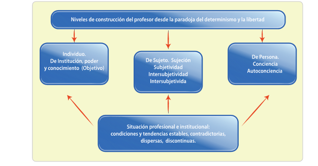Un profesor como individuo es compatibilista por principio espiritual y es determinista por principio institucional. Únicamente a través de la libertad de conciencia, la voluntad, el anhelo, la actitud de esperanza, puede establecerse un compatibilismo profesional en el que interviene como sujeto espiritual y resiliente. El tránsito de compatibilismo institucional (participando como individuo) a compatibilismo profesional (incluyendo la opción de sujeto) es el dilema en el mejoramiento del servicio educativo y la acción colectiva para impulsar la institución y la formación integral. En este tránsito se ubica la integración a la idea de la comunidad académica como una comunidad de vida evolutiva, significando la contención de individualismos y grupalidades.