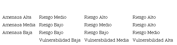 Con base en los modelos presentados, se caracterizó la amenaza con la siguiente matriz de análisis: