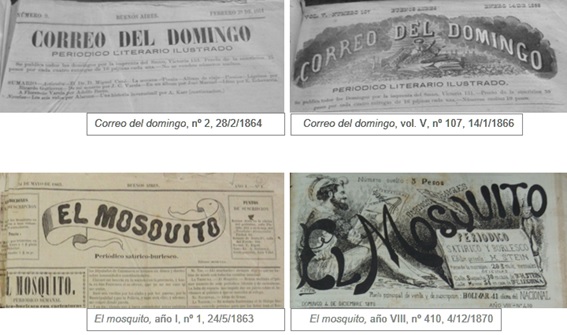 El Mosquito. Periódico satírico-burlesco, Buenos Aires, período 1863-1870. Archivo General de la Nación, Biblioteca Celesia, C-4968, C-4969, C-4970 y C-4971.