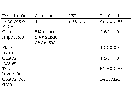 La importación de los Drones agrícolas como nueva línea comercial se ha consultado a varios proveedores buscando al mejor que se ajuste a las exigencias del mercado y la exigencia de la organización Motoragsa Cía. Ltda. que tenga norma ISO 9001 y la ISO 14000.