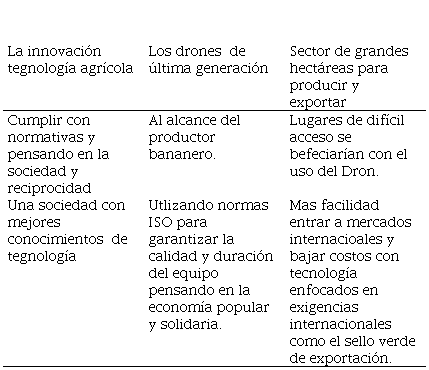 La organización Motoragsa Cía. Ltda. al buscar nuevas alternativas de negocio tiene esta oportunidad de ofrecer drones y masificar para generar una nueva idea de negocio, así también demostrándonos que es el momento de crecer más con esta línea tecnología, así también la encuesta hay bananeros muy capacitados y universitarios que podrían captar muy fácil el sistema operativo de la nube del Dron y así facilitar las labores agrícolas.