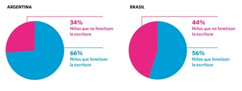 Resumen: Este artículo presenta resultados de dos investigaciones realizadas en la Argentina y Brasil. El objetivo era indagar el conocimiento sobre las unidades inferiores a la palabra oral y escrita en niños al finalizar la educación infantil con escaso contacto con libros y lectores en su entorno extraescolar; y en qué medida esos conocimientos se vinculaban con dos propuestas de enseñanza contrastantes. En entrevistas individuales clínico-críticas se solicitó la escritura de palabras y la omisión del primer fonema en una tarea oral. Los resultados evidencian que los niños que participan de prácticas de enseñanza constructivista alcanzaron niveles de escritura más avanzados y recurren a procedimientos más elaborados al intentar omitir el primer fonema que los que participaron de una propuesta fundada en actividades perceptivas-motrices y enseñanza graduada de letras.