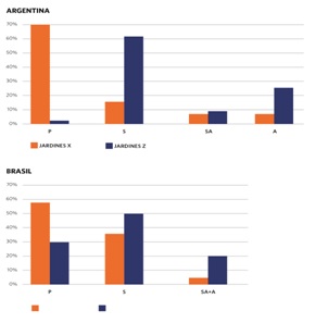 También se observa que hay otros niños que se apartan de esa correlación. Si bien son pocos los ejemplos encontrados en ambos tipos de jardines en la Argentina y en Brasil nos parece importante señalarlo.