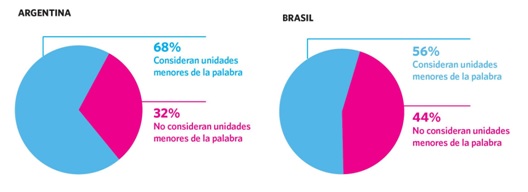 El primer análisis realizado fue por respuesta debido a que cada niño contestó a diez solicitudes, por lo tanto, en la Argentina se obtuvieron 640 respuestas y en Brasil 600. El foco inicial se centró en constatar cuántas respuestas de los niños consideraban las unidades menores de la palabra.