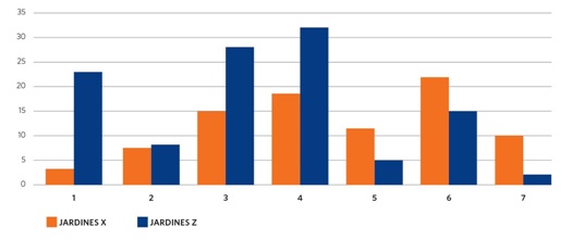 Si analizamos por tipo de jardín, en el estudio argentino ( Gráfico 4) se observa un porcentaje más elevado de respuestas más analíticas en los JIZ en relación con los JIX.