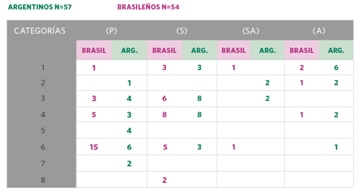 Tanto en el grupo argentino como brasileño, hay niños que presentan una trayectoria homogéneacontestando un mismo tipo de respuestas para los diferentes estímulos presentados. 4