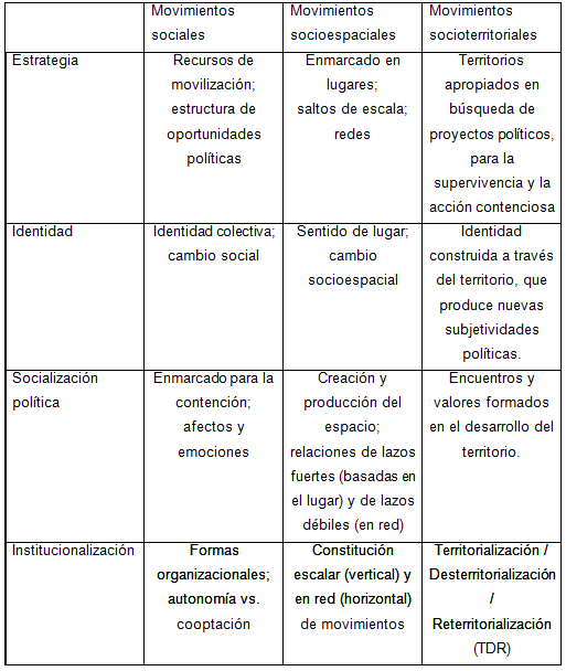 Movimientos sociales, movimientos socioespaciales y movimientos socioterritoriales