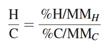 Los porcentajes de%H y%C, corresponden al reportado por el equipo para esos dos elementos al finalizar el análisis; MMH y MMC, son las masas moleculares del hidrogeno y el carbono respectivamente (Culmo et al. , 2013).