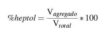 combinación heptano-tolueno (% heptol) en disolución,