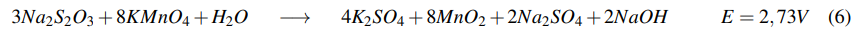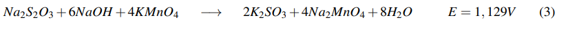 (2)Por lo tanto, la reacción global entre el KMnO4 y el tiosulfato de sodio puede expresarse como sigue: