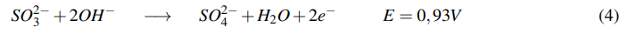 (3)En el medio de reacción, el ion sulfito generado durante la oxidación del ion tiosulfato, también puede oxidarse, según la reacción (Cotton & Wilkinson, 1975):