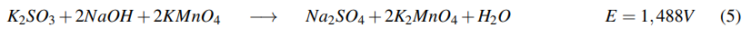 (4)Pudiéndose, entonces, llevar a cabo la reacción redox entre el ion permanganato y el ion sulfito generado de acuerdo a la siguiente ecuación: