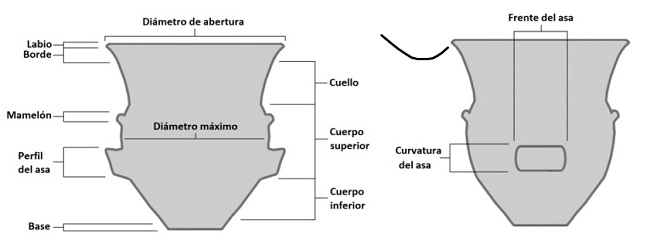 Zonas morfológicas de las tinajas Belén. Tomado de Iucci (2016)