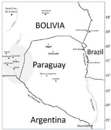 En este trabajo, analizamos datos etnohistóricos sobre cazadores-recolectores de la región del chaco boreal comprendida entre los paralelos 21°15’ y 23°26’ latitud sur para bosquejar un modelo de adaptación al ambiente que parece haber mantenido viabilidad durante muchos años (ver Figura 1). Este modelo socioambiental parece haber conservado su vigencia aún después de que los grupos guaycurú-hablantes iniciasen interacciones constantes, productivas y también agresivas con los pobladores bolivianos que gradualmente fueron ocupando la región. Nuestro interés se centra aquí en los grupos tobas que vivían en las llanuras bañadas por río Alto Pilcomayo.