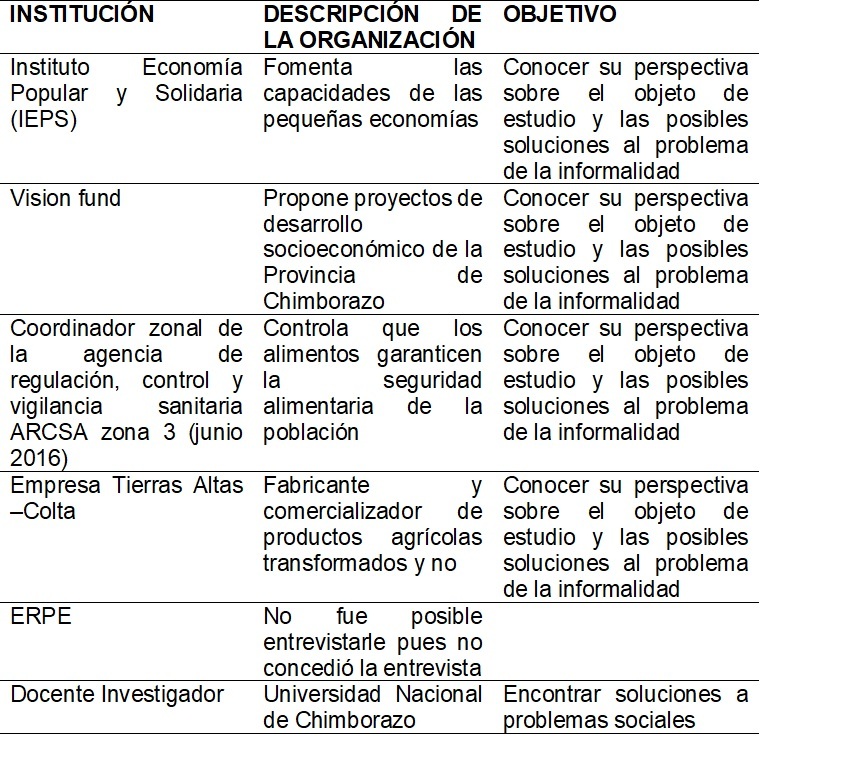 Se analiza los diálogos con varios actores de la producción del cantón Riobamba como el responsable de la Agencia de Desarrollo Local Crecer, el presidente del Consorcio de Cámaras de la Producción de Chimborazo, profesionales vinculados al Ministerio de Industrias y Productividad (MIPRO).