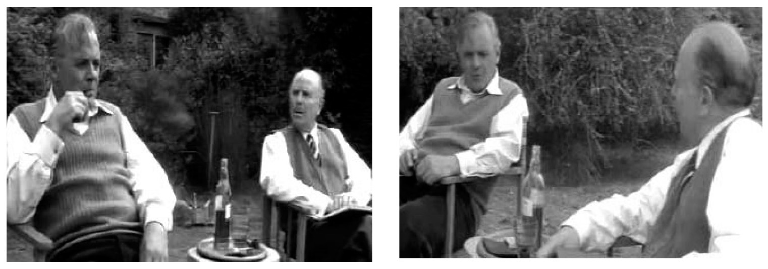 La escena de la boda es una de las más conmovedoras del filme, en la que Joy postrada en una cama del hospital da el sí definitivo a Jack en presencia del celebrante anglicano, del hijo de la novia y Warnie, hermano de Jack (figura 12). Es en ese preciso instante en el que se desencadena el sufrimiento de ambos: días felices en un instante de recuperación, paseos por los prados, momentos compartidos, pero con pesar porque temen lo que se avecina. En la película la vida matrimonial se limita a unos meses; en la vida real esa unión duró cuatro años (cf. Guzzetti, 2013).