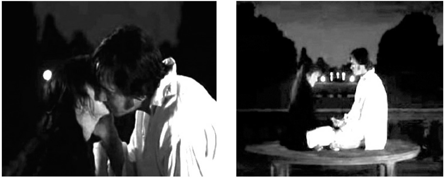 Otra escena importante es la del baile entre Darcy y Elizabeth Bennet. Esta secuencia presenta dos técnicas narrativas decisivas: la primera de ellas, el efecto de cámara lenta; y la segunda, la descontextualización de la pareja durante breves instantes viéndoseles bailar solos en el enorme salón (figura 4). Por otro lado, la calidad de la atmósfera lograda en escenarios externos (como el del diálogo entre Elizabeth y Wickham, situados debajo de un árbol y junto al río) es similar al de la crítica escena de Elizabeth con sus padres también junto al lago (debajo de un árbol) después de haber rechazado la propuesta matrimonial del señor Collins.