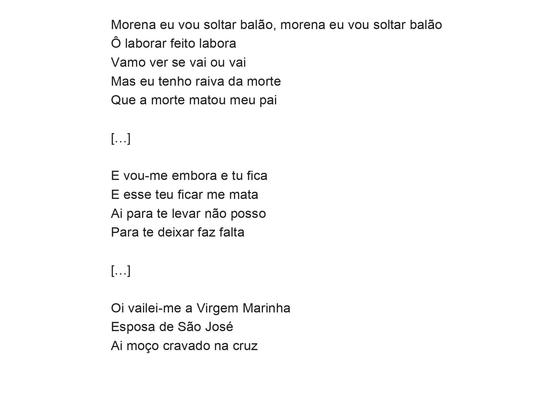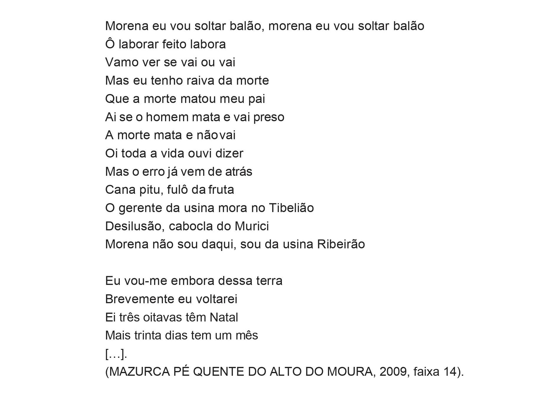 Em outro trecho de “Morena eu vou soltar balão”, percebemos ainda a relação das pessoas que fazem a Mazurca Pé Quente do Alto do Moura com o cristianismo.