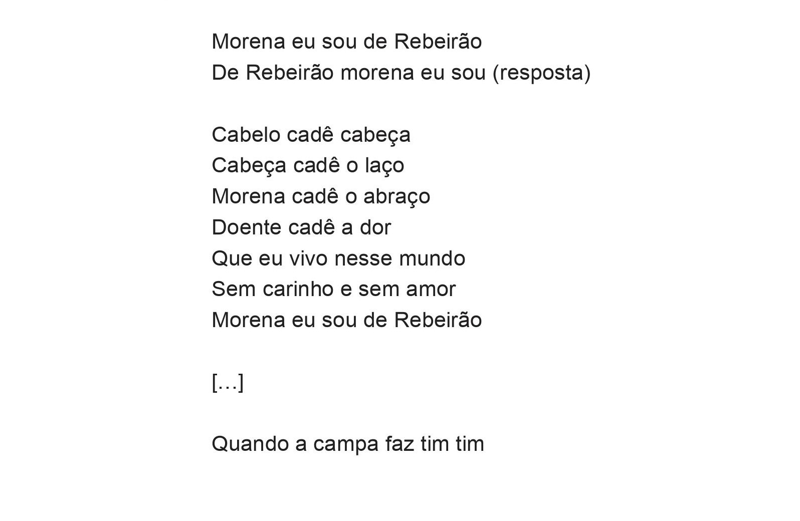 Vejamos agora “Morena eu sou de Rebeirão”: