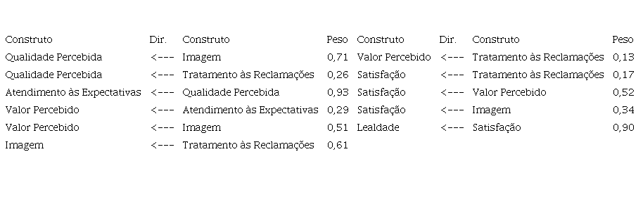 Por outro lado, observa-se, na Tabela 2, que os maiores determinantes da satisfação discente foram Imagem, Tratamento às Reclamações e Valor Percebido, com carga total padronizada (direta e indireta) igual a 0,70, 0,70 e 0,52 para aqueles construtos, respectivamente. Dessa forma, torna-se importante compreender o comportamento dos alunos por meio da imagem que estes fazem da IES, o que permite identificar a maneira como decidem entre as alternativas de serviços e como avaliam esses serviços, uma vez que os tenham recebido.