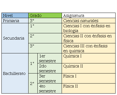 De acuerdo con el Plan 2011, emitido por la Secretaría de Educación Pública (SEP), las asignaturas que componen el estudio de las ciencias naturales amalgaman visiones de disciplinas como la biología, la geografía, la física y la química, orientadas a la explicación de fenómenos naturales y al reconocimiento de la diversidad natural del país y el mundo, buscando que los alumnos reflexionen y sean conscientes del mundo que les rodea (Secretaría de Educación Pública, 2011).