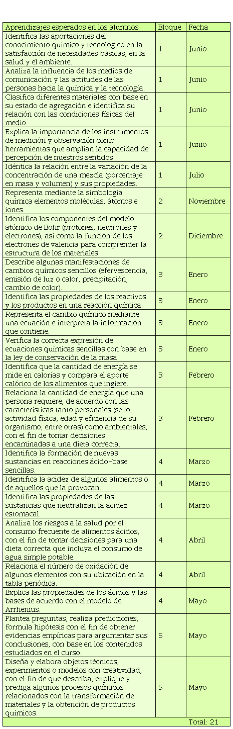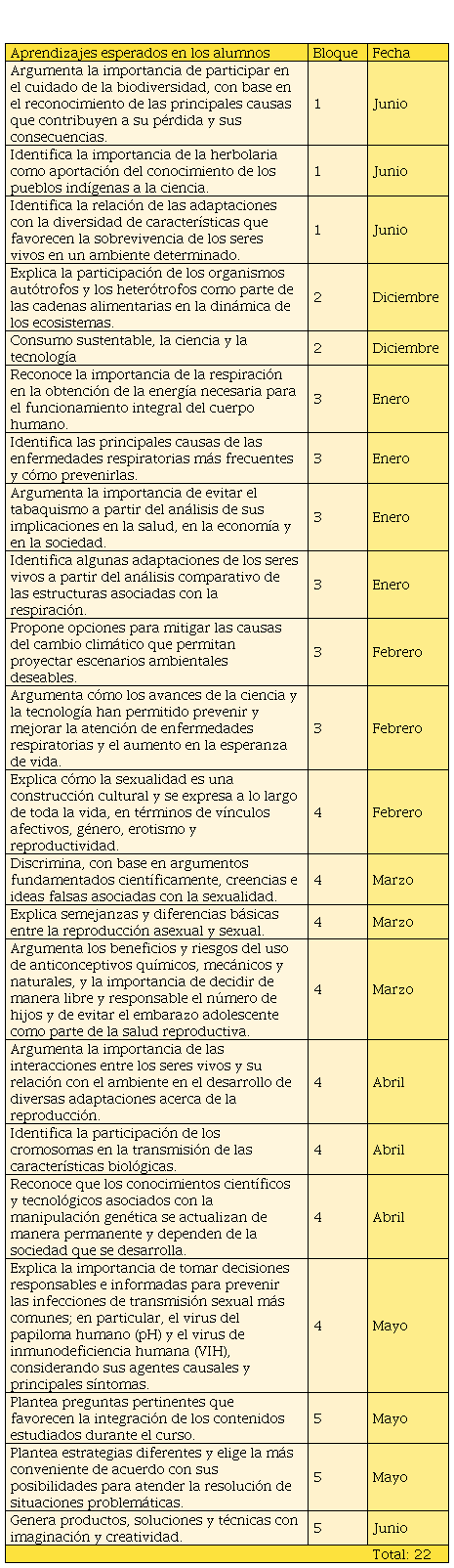 Se presentan a continuación, los aprendizajes esperados a partir de los cuales se desarrollaron las asesorías virtuales en las ciencias naturales y las fechas en que fueron realizadas.