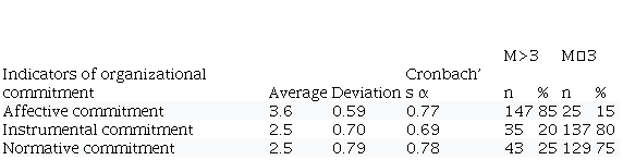 The normative commitment also appears with a result under the average (2.5). To Rego et al. (2005), there are reasons to infer that the organizations have interest to promote affective and normative bonds for its colaborators and to reduce the instrumental bond strength.