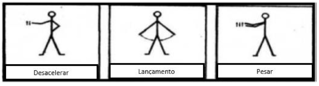 Algumas profissões são perceptíveis o uso dos conceitos pragmáticos vislumbrados na prática como é caso dos operadores de máquinas de injeção de plástico, pouco se utiliza os conceitos teóricos (epistêmicos) ( PASTRÉ, 1994). Ou ainda, o uso dos gestos, que mediante Leplat (2013) algumas profissões requerem o uso, como: dançarinos, malabaristas dentre outros, utilizam-se dos gestos para executar as tarefas profissionais, através do gesto signo ou gesto ação. Como exibe a figura 1.
