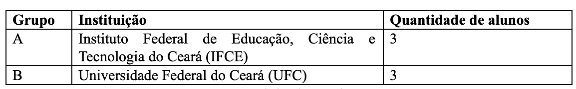 No grupo B, escolhemos três alunos do mestrado profissional em Ensino de Ciências e Matemática (ENCIMA) da UFC do segundo semestre letivo de 2018, esses professores se enquadravam como experientes e, tinham no mínimo quatro anos de experiência como professores em sala de aula.