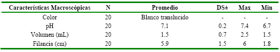 Variables de respuesta. Características macroscópicas del semen fresco: pH, color, volumen, filancia.