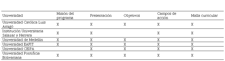 En la Tabla 2 se observa como resultado que todas las universidades evaluadas presentan información clara en cada uno de los aspectos relacionados con el programa que ofertan. Sin embargo, la IUSH no expone los objetivos de su pregrado de administración. Lo que puede ser una desventaja competitiva en comparación con las demás y que puede afectar negativamente la decisión de matricularse de un individuo que esté interesado en dicho pregrado.