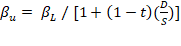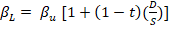 Pero dado que Bdel modelo CAPM representa el riesgo total de la empresa o sector, BL , que incluye el riesgo sistemático operativo y financiero; y en lo que se considera que habría afinidad entre la empresa o sector emergente y del país desarrollado es en el riesgo operativo, BU , entonces se hace necesario calcularlo así: