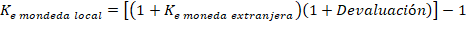 Si se considera una devaluación en condiciones de paridad cambiaria, se utiliza la siguiente fórmula: