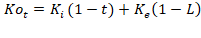 Donde Ki es el costo de la deuda, pero dado que los intereses son deducibles de la base gravable de la empresa, el costo de la deuda después de impuestos queda expresado como Ki (1-t); la t representa la tasa de impuestos de la empresa.