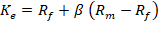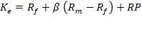 Según el modelo de valoración de activos de capital (CAPM), el costo del capital propio, Ke, es igual a la tasa libre de riesgo, Kf, más el riesgo sistemático de la empresa o sector multiplicado por la prima de riesgo de mercado , que resulta de la diferencia entre el rendimiento del mercado, y la tasa libre de riesgo. Por lo tanto, Kees equivalente a: