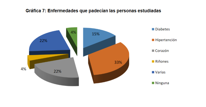 Como se puede observar en la gráfica siguiente, casi todas las personas estudiadas padecían una o varias enfermedades.