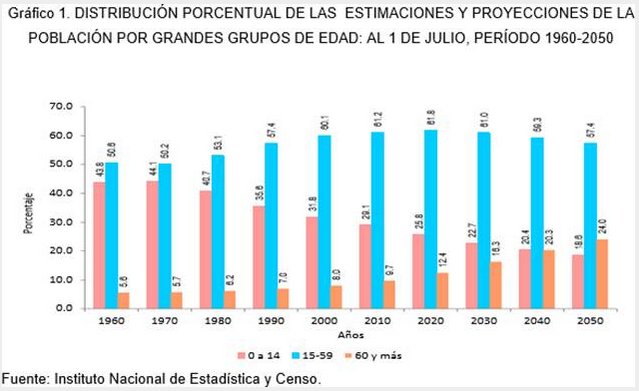 En el país, el 14,5 % de la población es mayor de 60 años y la población de 60 a 74 años representa el 69,1% de los adultos mayores. Las autoridades de salud tienen como propósito de que este aumento en la esperanza de vida vaya acompañado de una adecuada calidad de vida. La meta trazada es lograr una longevidad satisfactoria en todos los sentidos no solo en cuanto a cantidad de años sino a la calidad de vida .