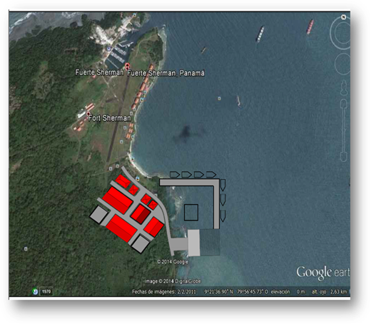 La propuesta consiste en la construcción de un puerto o muelles con salida al mar en la provincia de Colón, ubicado en Fuerte de Sherman (Figura 2), definiendo espacios suficientes para desarrollar un futuro clúster marítimo permitiendo desarrollar una alternativa viable para el impulso, administración, desarrollo y la competitividad de las empresas y necesidades del sector en esta provincia.