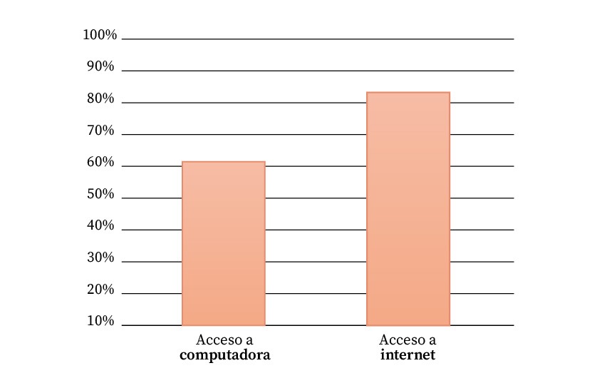 La brecha se profundiza en los sectores de ingresos más bajos y en los barrios populares. Debe señalarse asimismo los niveles profundamente desiguales de alfabetización digital y el déficit en acceso a dispositivos como PC en los sectores populares. En Argentina, por ejemplo, en el último trimestre del año 2019, se identificó que el 60,9% de los hogares urbanos cuenta con acceso a una computadora y el 82,9% a Internet (Fig. 7).