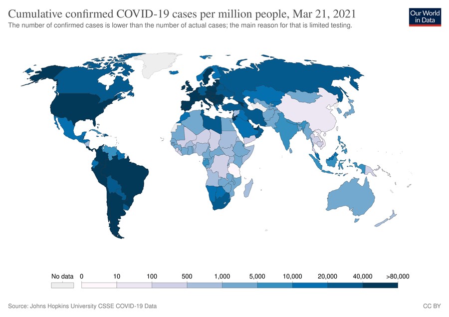 Our World in Data (2021). World map of total confirmed COVID-19 cases per million people. Recuperado de: https://ourworldindata.org/coronavirus