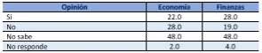 A la pregunta ¿hasta dónde la preparación de los nuevos egresados está actualizada a las demandas del mercado laboral? Desafortunadamente, cerca del 50% de los encuestados no sabe o no contestó la pregunta. De los que contestaron, el 28% de los financistas y el 22% de los economistas manifestaron que, dicha preparación sí está actualizada, mientras que el 28% de los economistas y el 19% de los financistas dijeron que la preparación de los nuevos egresados no estaba actualizada. Ver tabla 4.