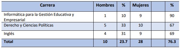 En cuanto a la carrera universitaria que cursan los discentes, el 27.8% corresponde a Informática para la Gestión Educativa y Empresarial, el 33.3% a Inglés y el 38.9% a Derecho y Ciencias Políticas; lo que representa la homogeneidad de la muestra en cuanto a cantidad de participantes por carrera.