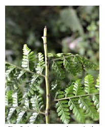 Se tomaron fotografías de los especímenes en campo, realizando la herbivoría. Para corroborar su identificación se llevaron al laboratorio y se utilizó la clave de identificación Blackwelder, R. E., 1946, además se utilizó la Colección Nacional de Referencia de Insectos del Museo de Invertebrados G. B. Fairchild de la Universidad de Panamá. De igual forma colectamos muestra del helecho Macrothelypteris torresiana(Fig. 2) para corroborar su identificación en el Herbario de la Universidad de Panamá.